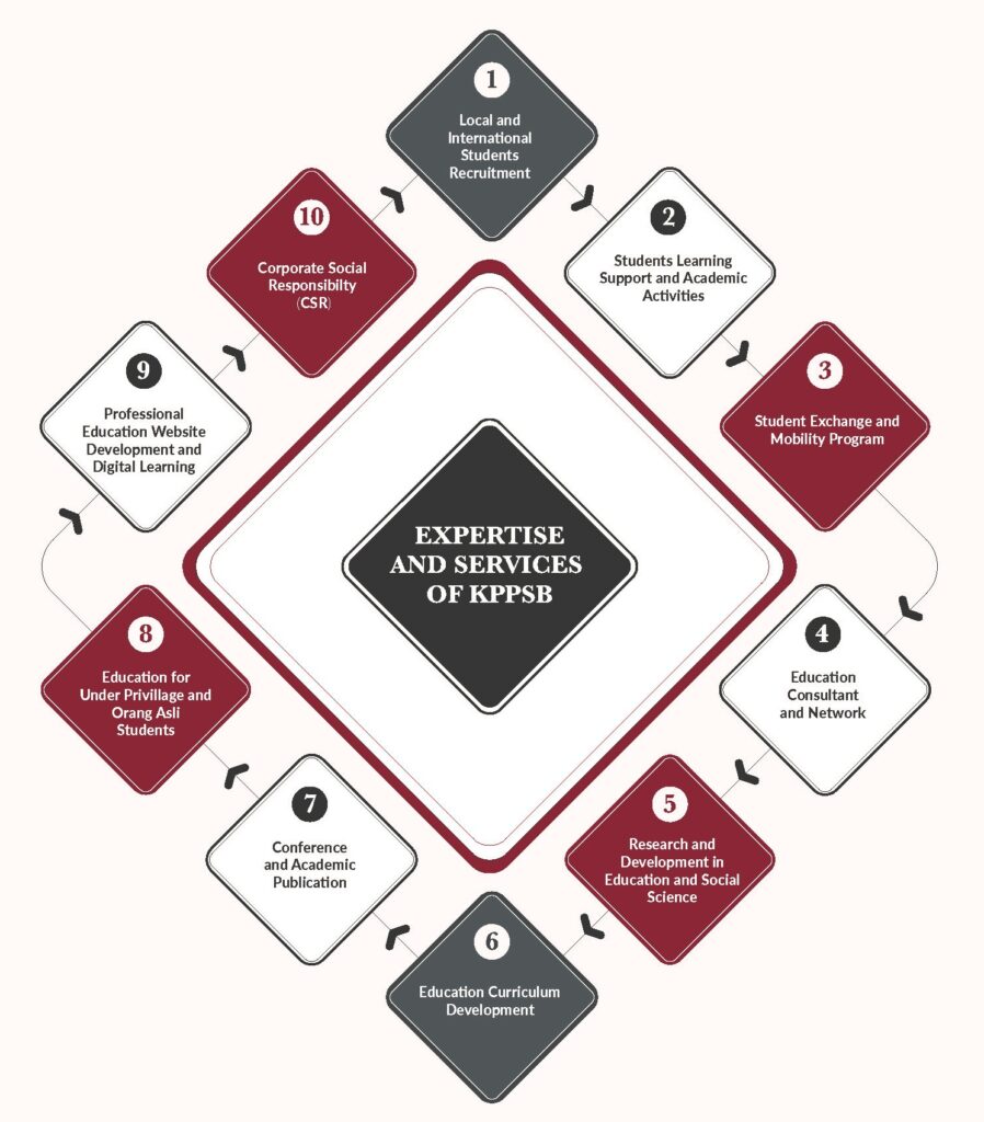 Konsortium Pendidikan Profesional Sdn Bhd (Consortium of Professional Education Sdn Bhd) was established by a combination of several agencies and companies with various expertise in the field of education. Professional education specialist focus on student recruitment, research education development, educational consulting, website development and digital learning, educational module development, student exchange and mobility programs, and consulting in developing industrial networks among local and international institutions and universities to strengthen their existing programs.